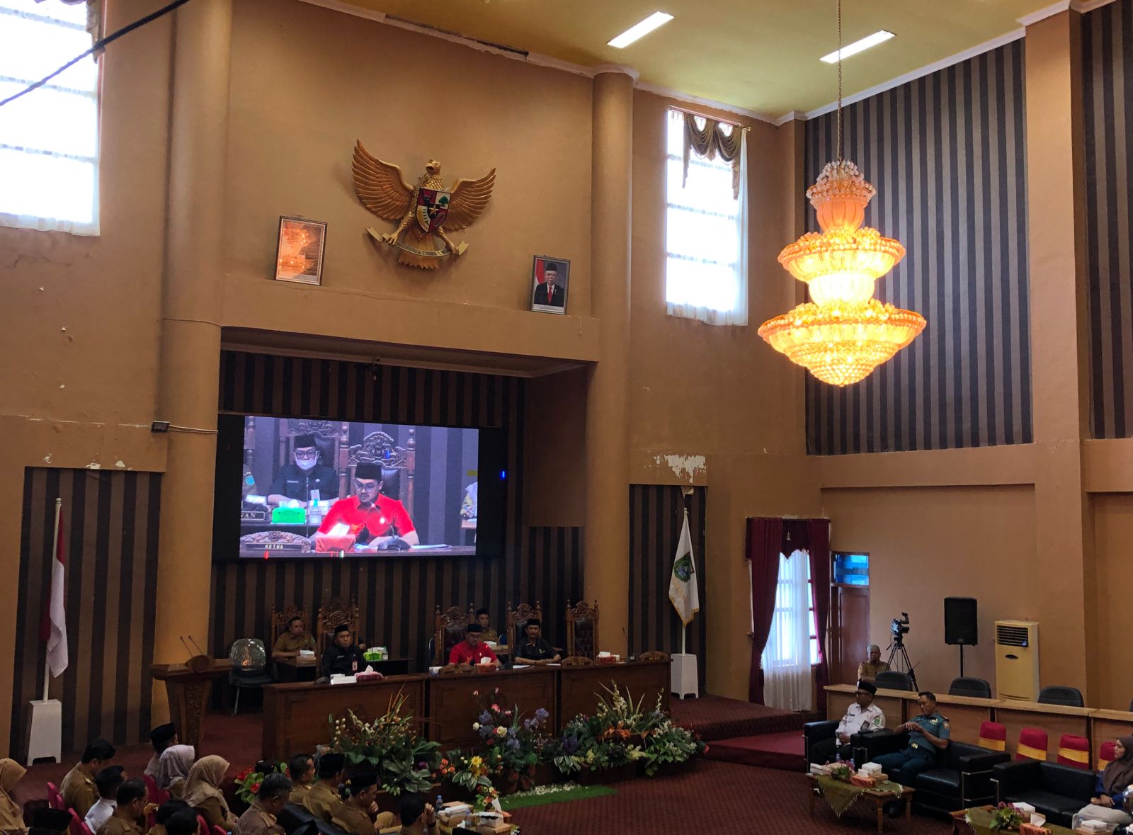 Rapat Paripurna digelar di ruang utama sidang DPRD Kabupaten Tanah Bumbu dipimpin Ketua DPRD Tanbu, Andrean Atma Maulani. Dihadiri Bupati Tanbu diwakili Staf Ahli Bupati, Anggota Dewan, Forkopimda, Seluruh Kepala Satuan Kerja Perangkat Daerah (SKPD), dan undangan lainnya.
