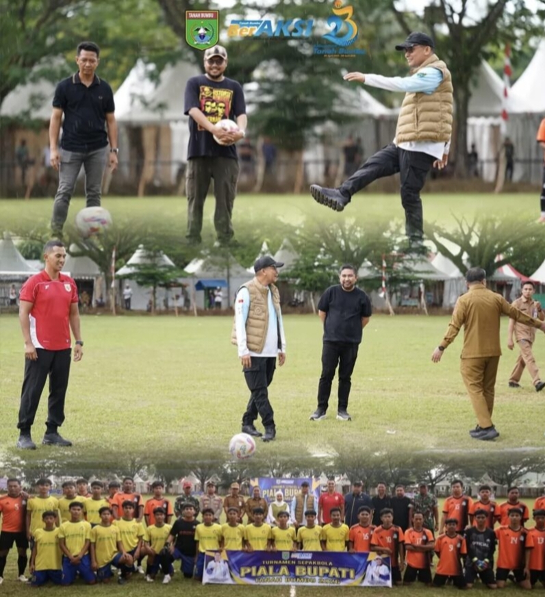 TANAH BUMBU, Goodnews.co.id – Suasana Lapangan Sepakbola 7 Februari, Pagatan, Kecamatan Kusan Hilir, Selasa (7/4/2026) dipenuhi sorak-sorakan penonton saat Bupati Tanah Bumbu Andi Rudi Latif melakukan tendangan pertama sebagai tanda Turnamen Sepakbola Piala Bupati Tanah Bumbu Tahun 2026 resmi digelar.