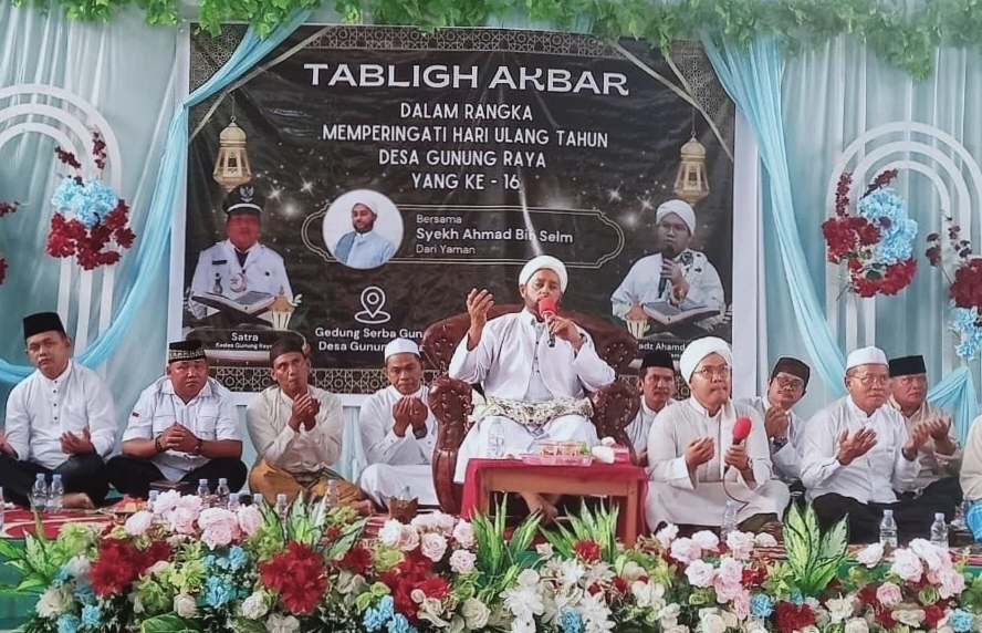 TANAH BUMBU, Goodnews.co.id – Anggota Dewan Perwakilan Rakyat Daerah (DPRD) Kabupaten Tanah Bumbu, Makhruri dan Sayono, menghadiri Tabligh Akbar di Desa Gunung Raya, Kecamatan Mantewe, Sabtu (9/8/2025).