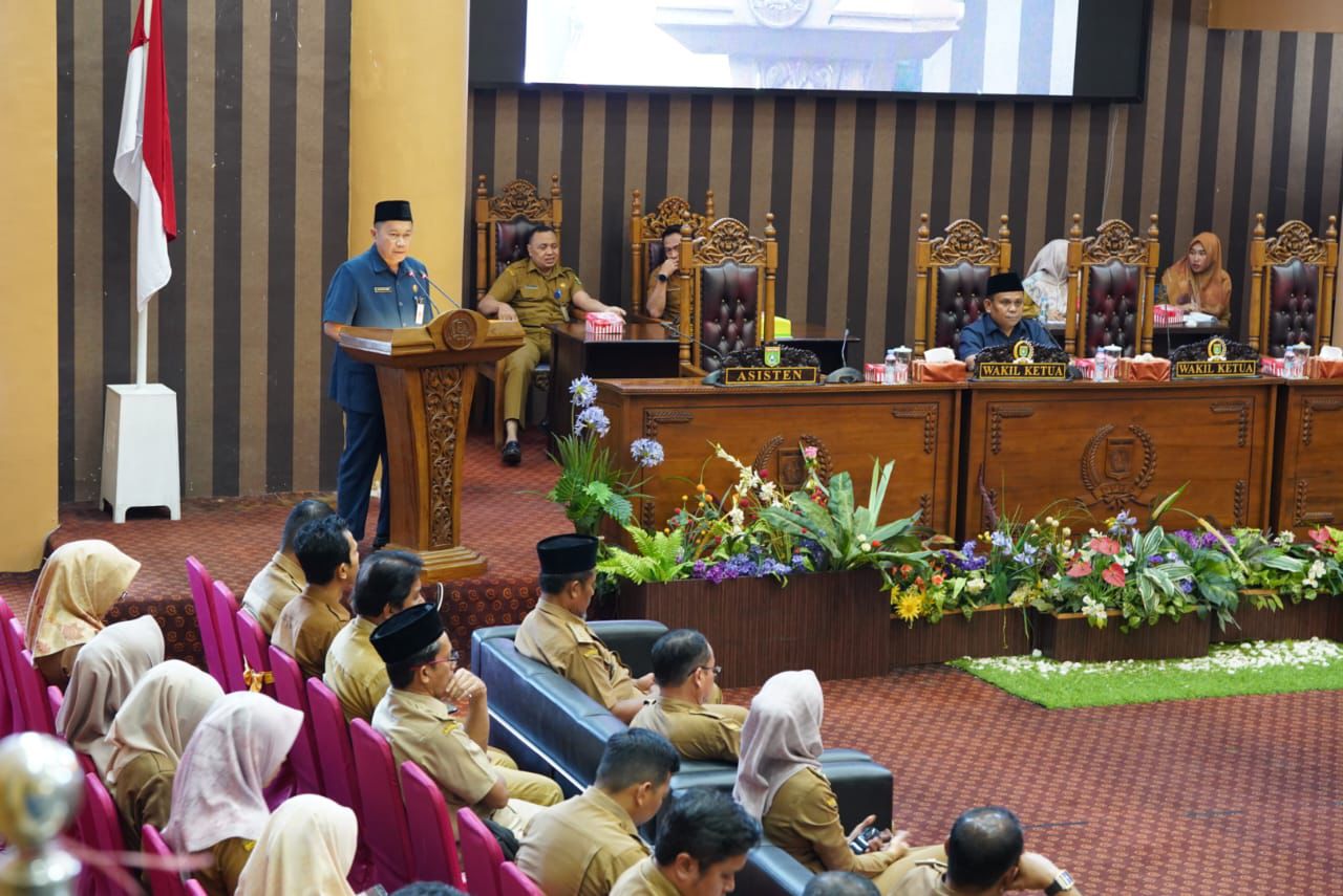 TANAH BUMBU, Goodnews.co.id – Bupati Kabupaten Tanah Bumbu (Tanbu), Zairullah Azhar, diwakili Asisten II Bidang Perekonomian dan Pembangunan, Eriyanto Rais, menyampaikan jawaban pihak eksekutif atas Pemandangan Umum Fraksi Dewan Perwakilan Rakyat Daerah (DPRD) Tanah Bumbu terkait Rancangan Peraturan Daerah (Raperda) Tanah Bumbu di Gedung Rapat Paripurna DPRD Tanah Bumbu, Selasa (15/10/2024).
