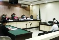Mantan Kepala Desa Wiritasi, Evan Roviyan, mendengarkan vonis 3 tahun penjara oleh Majelis Hakim di PN Tipikor Banjarmasin, Kamis (12/3/2026).