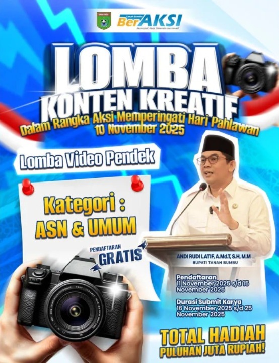 TANAH BUMBU, Goodnews.co.id – Pemerintah Kabupaten (Pemkab) Tanah Bumbu (Tanbu) melalui Dinas Komunikasi Informatika dan Persandian (Diskominfo SP) menggelar Lomba Konten Kreatif dalam rangka memperingati Hari Pahlawan, pada tanggal 10 November 2025.