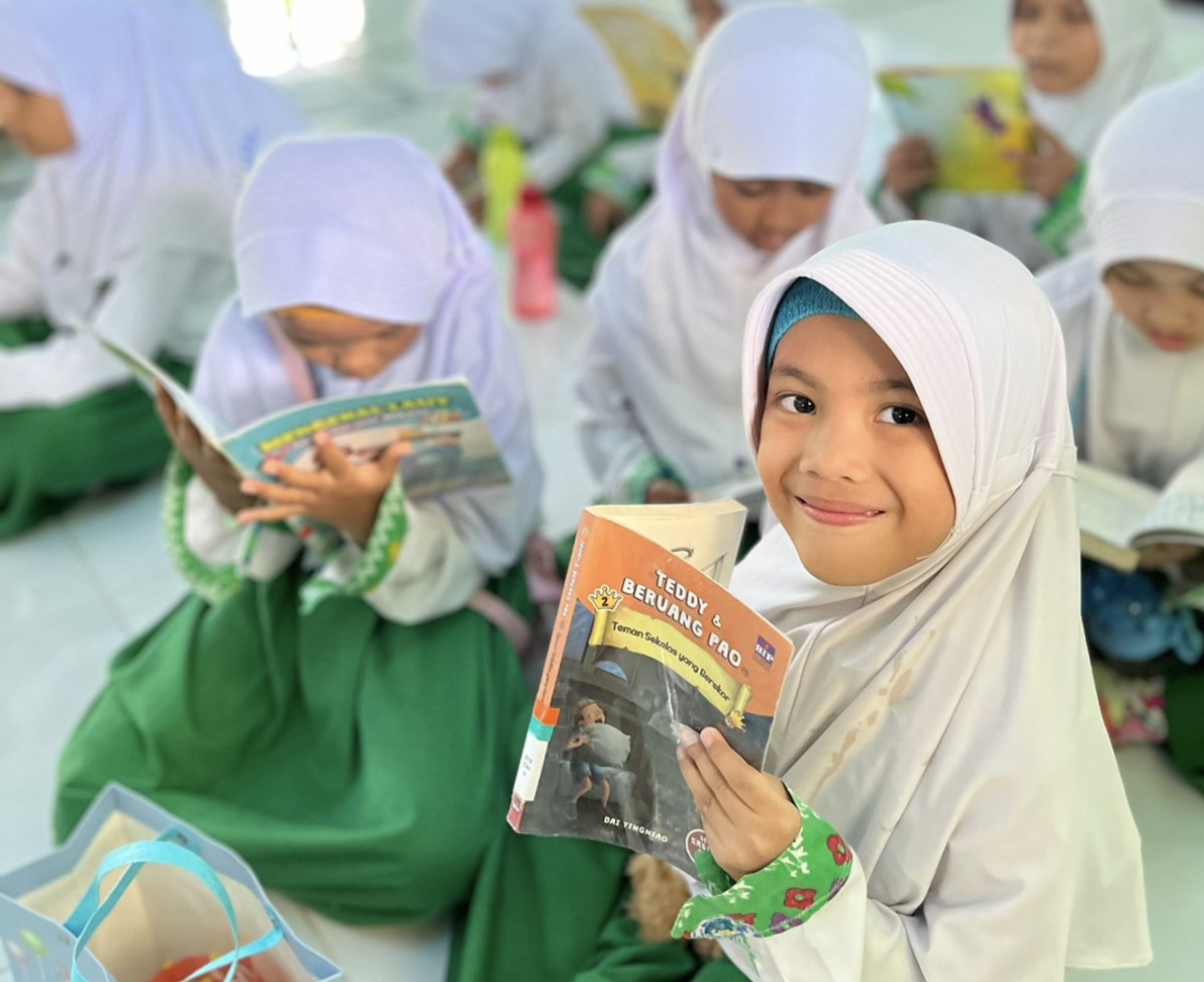 Kegiatan tersebut juga, mendapat sambutan hangat dari para murid yang terlihat antusias, dalam membaca buku sembari mendengar cerita yang di bawakan oleh tim pendongeng.