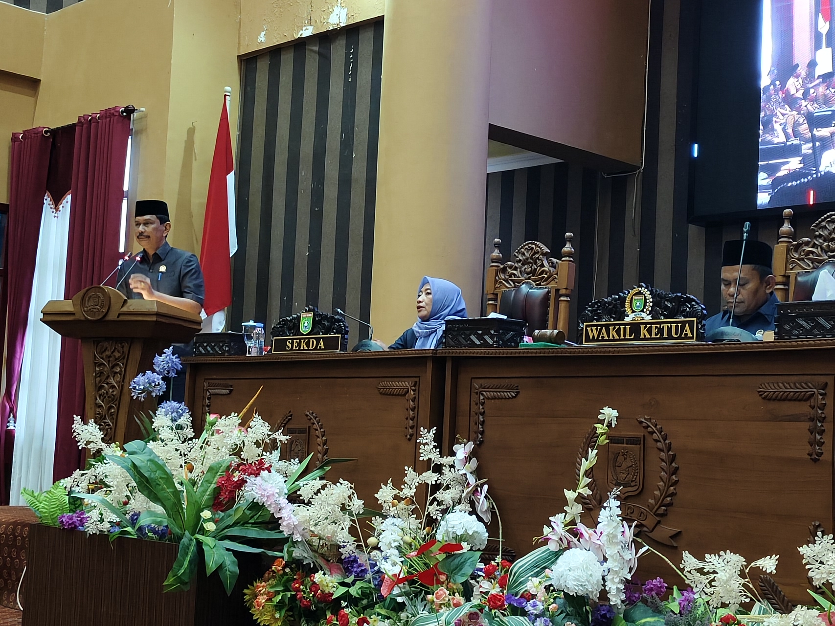Rapat paripurna ini dipimpin oleh Wakil Ketua I DPRD Tanah Bumbu, Hasanuddin, yang dihadiri Sekretaris Daerah (Sekda), Yulian Herawati, mewakili Bupati Tanbu Andi Rudi Latif.
