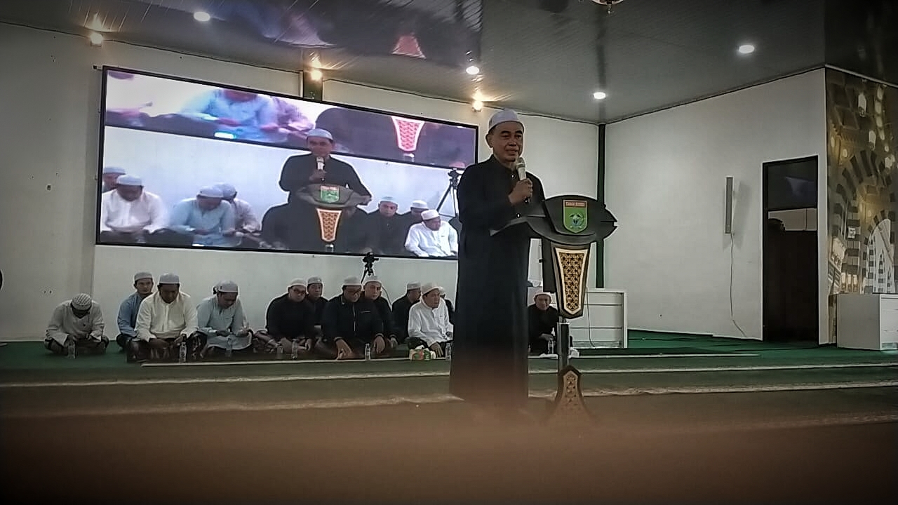 TANAH BUMBU, Goodnews.co.id — KH Zhofaruddin atau lebih dikenal Guru Udin dari Kota Samarinda Provinsi Kalimantan Timur memberikan tausiyah dalam rangkaian shalat Taubat, Dhuha, dan Hajat berjamaah di Pendopo Serambi Madinah di lingkungan Kantor Bupati Tanah Bumbu, Kamis (5/12/2024).