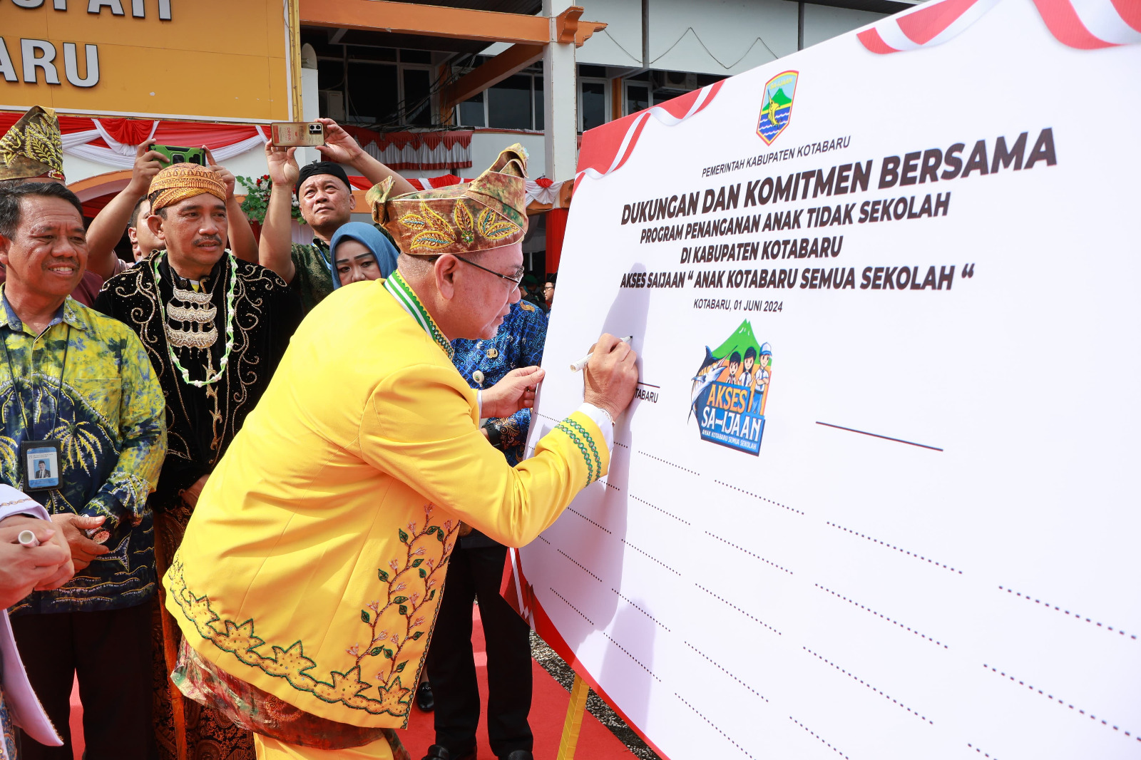Kemudian, Launching Peluncuran Logo Akses Sa-Ijaan (Anak Kotabaru Semua Sekolah), dalam mensukseskan program Penangangan Anak Tidak Sekolah di Kabupaten Kotabaru, ditandai dengan pelepasan balon.