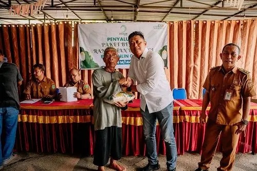 Penyerahan bantuan secara simbolis diberikan perwakilan External Relation Jhonlin Group, Rudi Triharyatna kepada kepala desa.