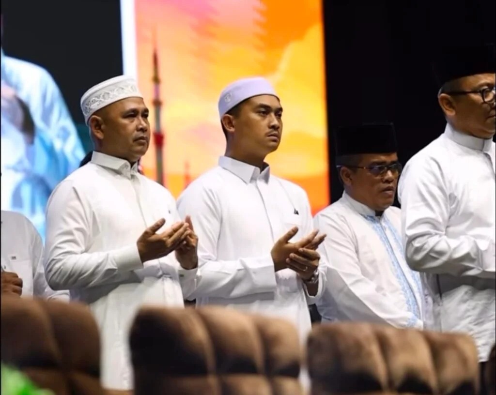 Kegiatan ini juga dihadiri oleh unsur Forkopimda, tokoh agama, alim ulama, serta ribuan jamaah bertempat di Masjid Agung Al-Falah, Kamis (1/1/2026) malam.