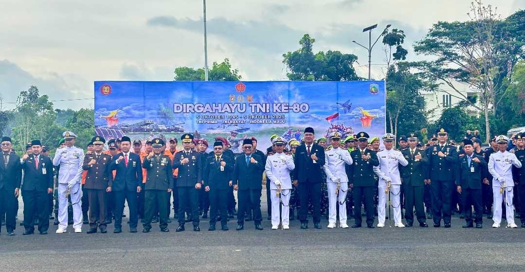 KOTABARU, Goodnews.co.id – Pemerintah Kabupaten (Pemkab) Kotabaru menggelar upacara dalam rangka memperingati Hari Ulang Tahun (HUT) ke-80 Tentara Nasional Indonesia (TNI), di halaman Kantor Bupati Kotabaru, Minggu (5/10/2025).