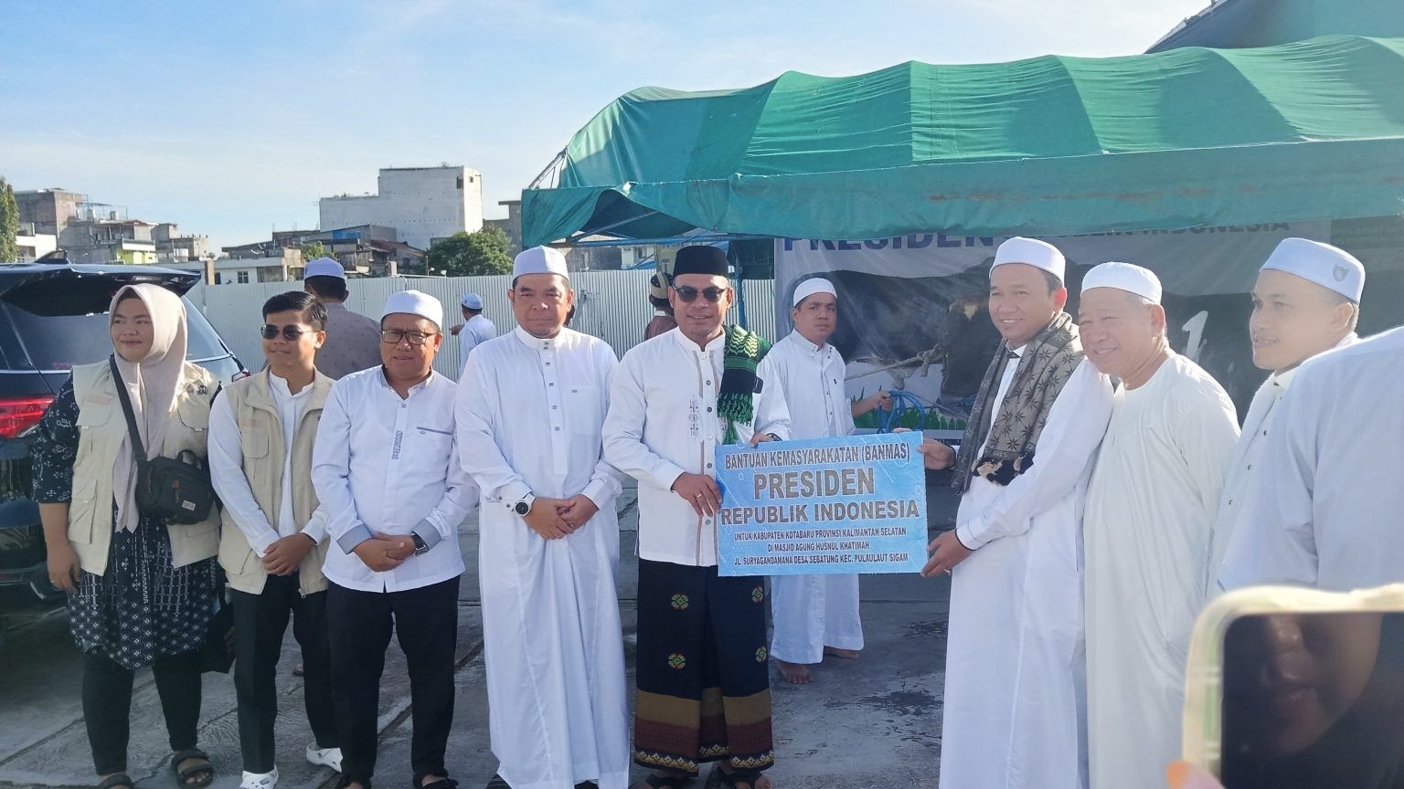 Penyerahan dilakukan secara simbolis usai pelaksanaan Salat Ied di Masjid Agung Husnul Khatimah, dan diterima langsung oleh Wakil Bupati Kotabaru, Syairi Mukhlis, didampingi Pj Sekretaris Daerah (Sekda) Kotabaru, Eka Saprudin, Jumat (6/6/2025).