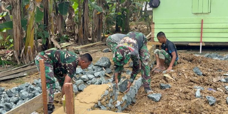 TANAH BUMBU, Goodnews.co.id – Satuan Tugas (Satgas) TNI Manunggal Membangun Desa (TMMD) ke-126 Kodim 1022/Tanah Bumbu (Tanbu) terus mewujudkan program rehabilitasi rumah tidak layak huni (RTLH) dengan membangun pondasi rumah warga di Desa Rejosari, Kecamatan Mantewe, Senin (13/10/2025).