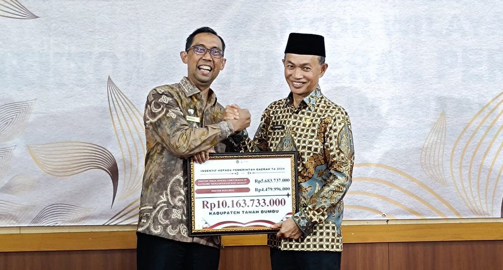 Pada kegiatan tersebut, Pemerintah Kabupaten Tanah Bumbu menerima insentif fiskal kinerja tahun berjalan kategori kesejahteraan masyarakat sebesar Rp 5.683.737.000, dan insentif dana desa sebesar Rp 4.479.996.000.