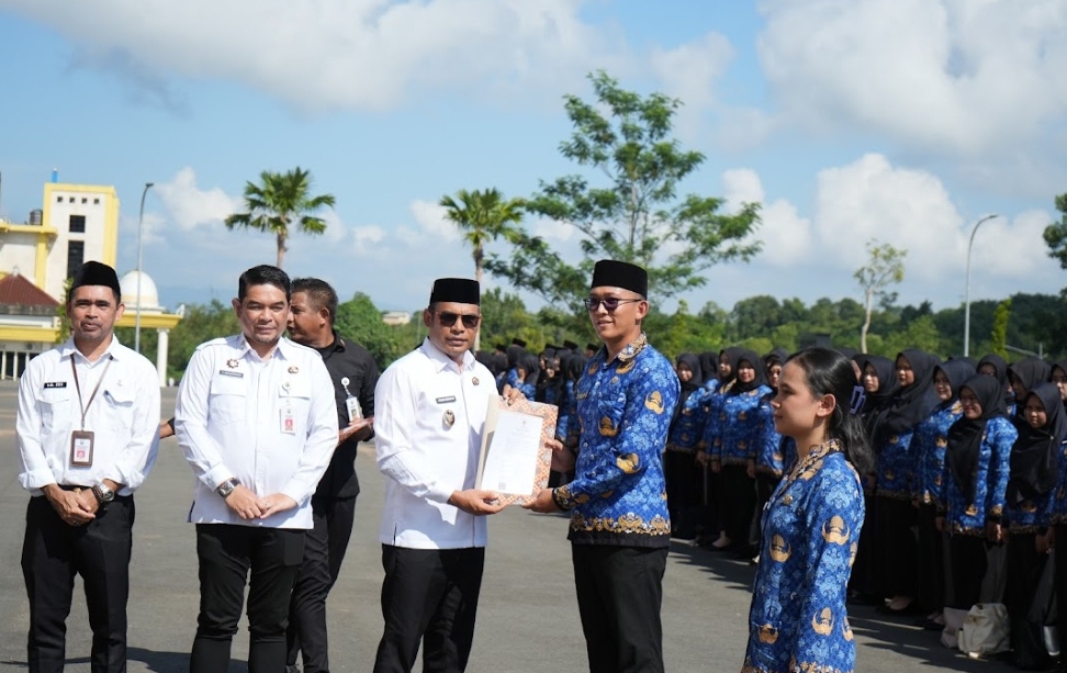 Pelantikan ini mencakup penyerahan Surat Keputusan (SK) pengangkatan sekaligus pengukuhan status Aparatur Sipil Negara (ASN) sebanyak 601 orang perempuan dan 271 laki-laki.