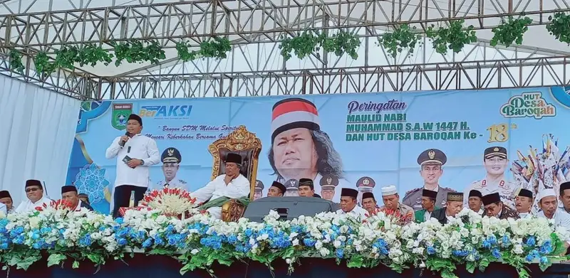 “Atas nama Pemerintah Kabupaten Tanah Bumbu mengapresiasi dan menyambut baik tabliq akbar maulid Nabi Besar Muhammad Saw, yang dirangkai dengan syukuran Hari Jadi Desa Baroqah ke-18,” ucap Abdul Muiz menyampaikan sambutan Bupati Andi Rudi Latif, Minggu (7/8/2025).